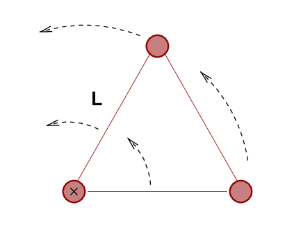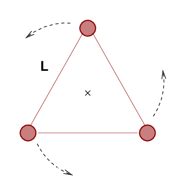 and they are arranged in an equilateral triangle with sides