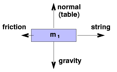 N - m1*g = m1*ay = 0 ---> N = m1*g