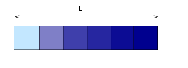 A ruler is exactly L = 6 inches long. It has a linear mass density which increases from one end of the ruler to the other: