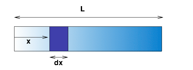 where   "x"    is the distance from left end in inches