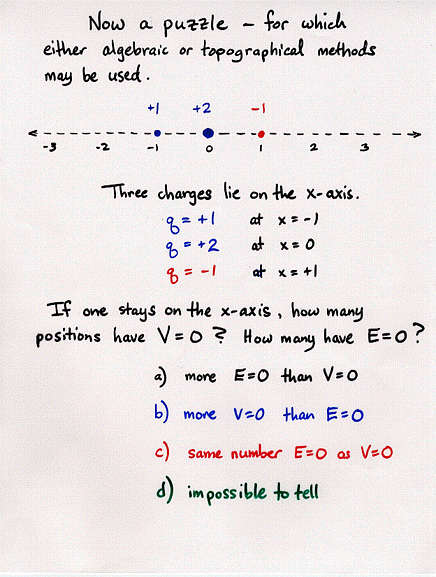 - One can use the electric potential/altitude analogy to solve