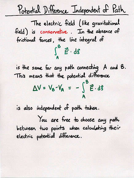 - Electric potential between two points is independent of the