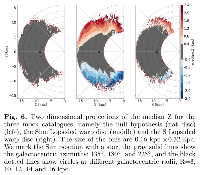 The actual Gaia measurements are shown in the figure below. It's clear that there is a systematic difference between stars on one side of the Sun and stars on the other side.