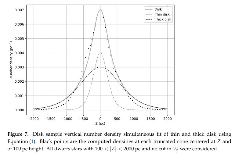 When Vieira et al. fit two exponential models to fit these two populations, the "fast" and the "slow", they find the values for the scale heights shown in the captions below.