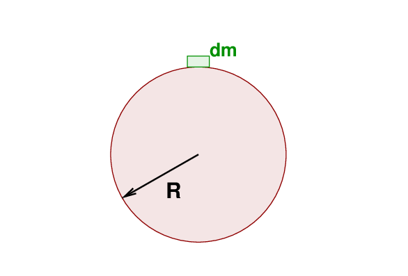 We'll start with an even simpler example: a solid sphere of radius R and mass M, upon which sits a little chunk of mass dm.