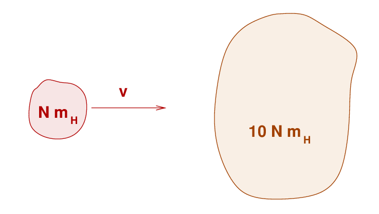 Q: If the clump of gas has an initial velocity of v = 5,000 km/s,