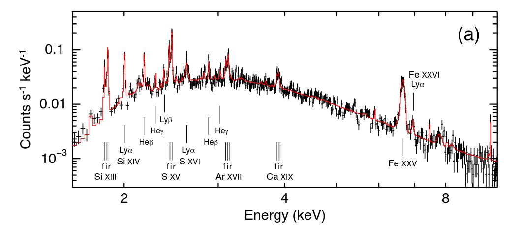 Aha! Now, this sort of transition produces X rays! Please do remember the energy of that photon emitted by Fe XXVI ...