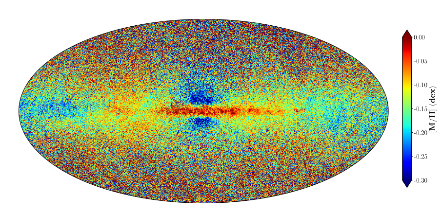 Stars in the Milky Way, particularly those in the solar neighborhood, share a relatively narrow spread of metallicities. The majority of stars have values between solar (0.0) and slightly metal-poor (-0.20 or so).
