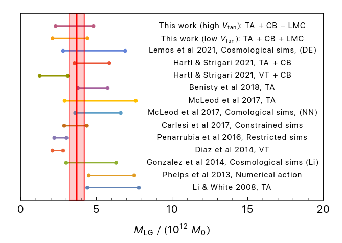 On the other hand, the timing argument is not quite so tricky. We can at least make a reasonable guess at the combined mass of the Milky Way and Andromeda, as well as the other objects in the Local Group.