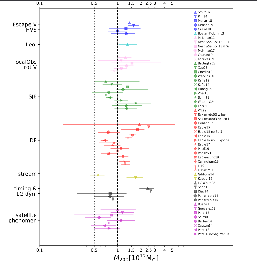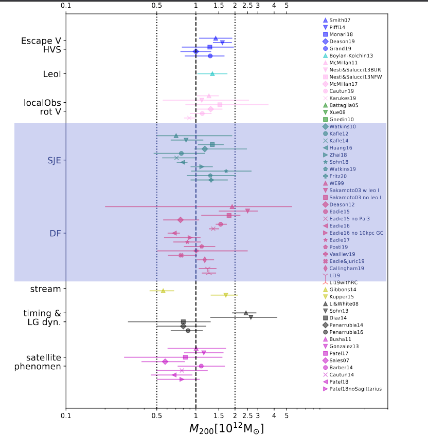 This technique, and a similar one referred to as the "Distribution Function", or "DF" for short, yield similar results for the mass of the Milky Way.