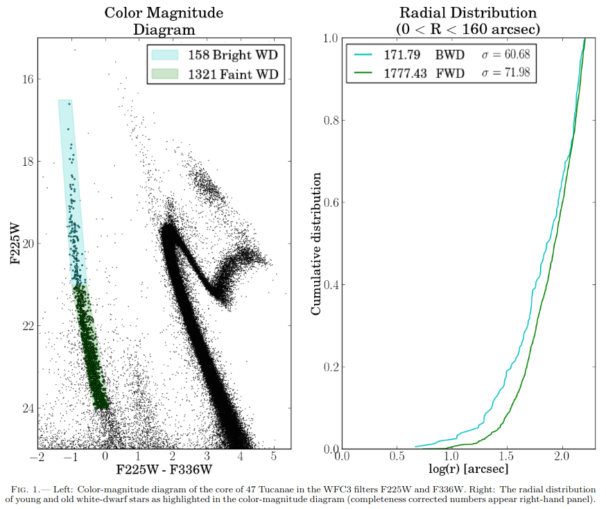 They then measured the position of all the white dwarfs, and plotted the radial distribution of each group (see right-hand panel).