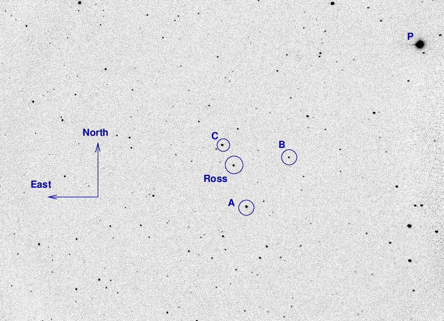 This is one of the stars that a capstone student may study over the next year in a project involving parallax. Ross 248 is a relatively faint red star surrounded by many other stars of similar brightness, so it's a good candidate for high-precision parallax measurements.