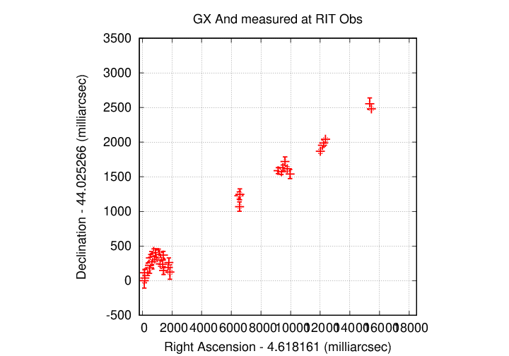 GX And is a nearby (binary) star which will be the target of a parallax project at some point. One of the two components is bright -- about mag V = 8 -- so one must use short exposures to prevent it from saturating the detector. That may mean that this system isn't as easy to measure as Ross 248 or some others.