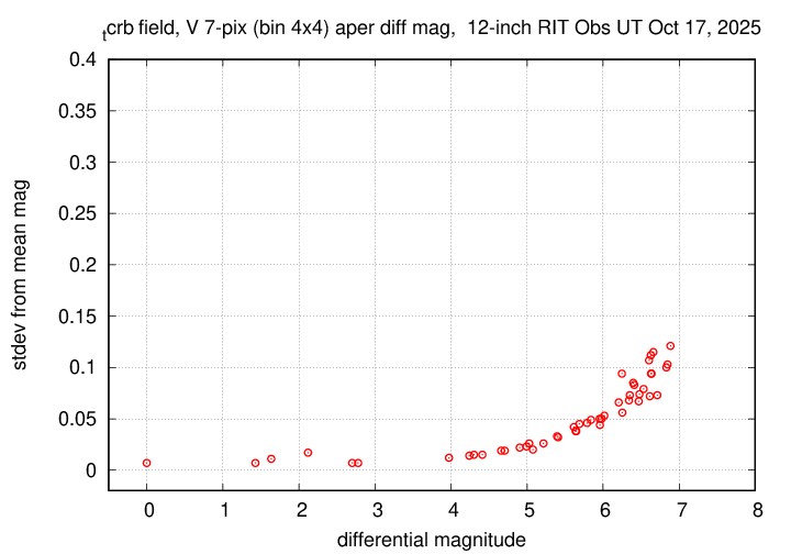 Sigma-vs-mag plots show that the floor in V-band was about 0.007 mag in V; it was 0.009 in B.
