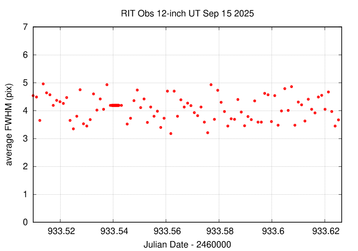 The FWHM was pretty steady, but had a large scatter due to the lack of guiding.