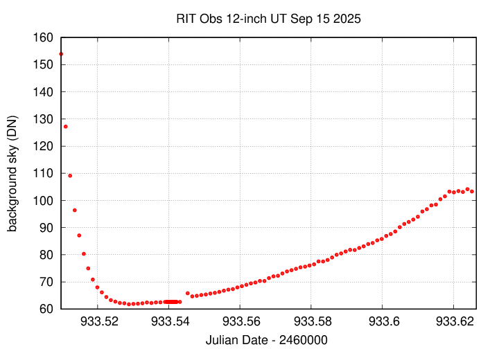 Here's the sky background over the course of the run. Very smooth -- no evidence for clouds.